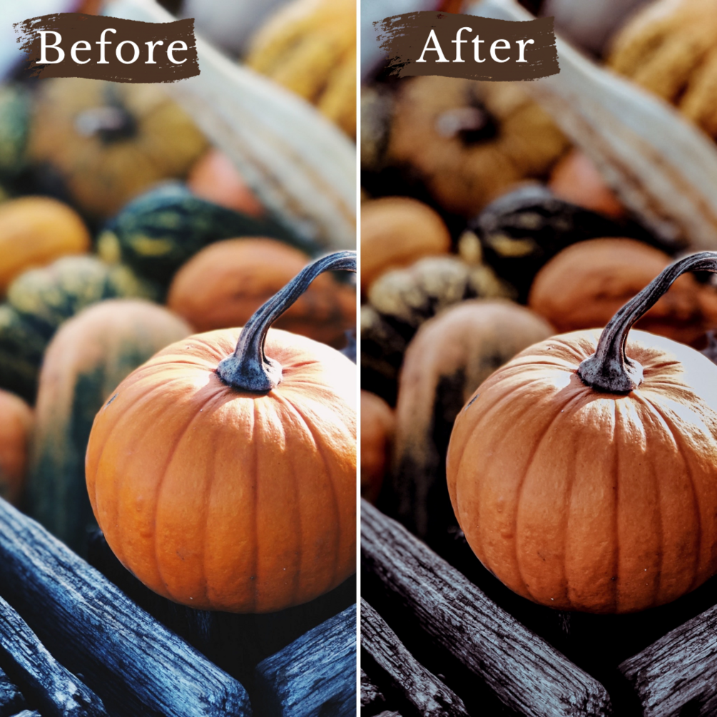 Works amazing on your IRL photos, as well as bright orange and yellow tones - perfect for fall season pics! Scroll down for more examples.